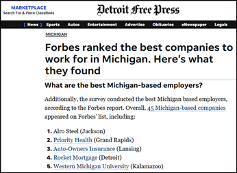 | Forbes America's Best Employers Alro Steel is proud to be ranked first among companies headquartered in Michigan on the 2025 Forbes America's Best Employers by State list. Forbes ranking of America’s Best Employers is based on a Statista survey of more than 160,000 employees.